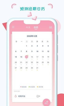 用彩色日历标记显示的周期预测,小仙女月记本app让您直观地浏览姨妈的月经趋势。