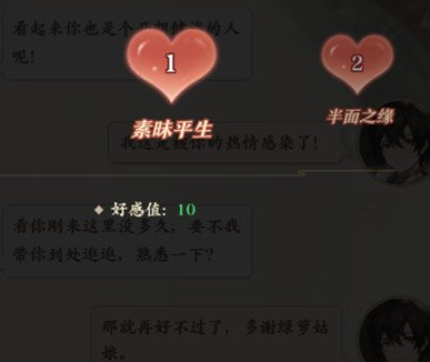 玩家首先进入庭院,选择右下角的【好感度】和【传音石】。这两个选项都是提高本源大师好感度的方法。玩家可以在此页面与自己获得的源大师进行互动。互动培养好感度。在传音石玩法中,玩家每天只需要选择三位本源大师进行对话,并在对话中选择合适的选项即可获得好感度;