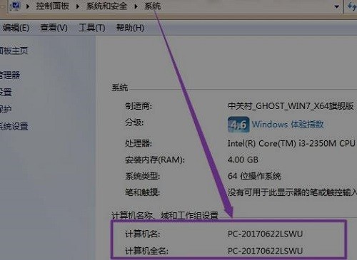 2. 然后您可以在系统界面中看到“计算机名称”。