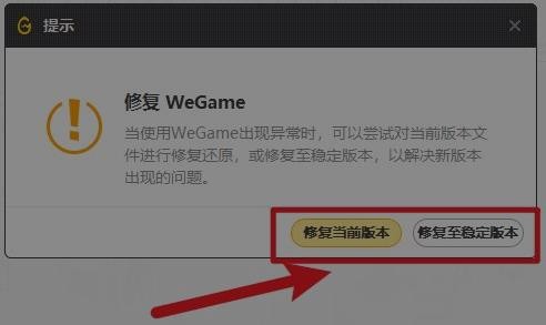 1、首先进入wegame,点击右上角三点菜单,选择“版本修复”。