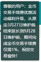 2.官方经常在手续费上有一些折扣。优惠期间,按照优惠价格计算手续费,比如这个1%金币交易费。