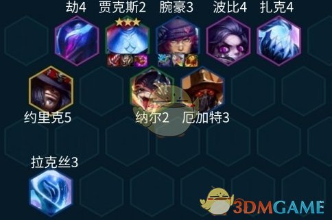 5-2拉8,8人口根据血量考虑接下来怎么打。如果血量低的话,我们需要直接上4费卡2星的D阵容,提高阵容的整体战斗力。拉克丝不需要追逐三颗星。提升不是特别大,但是血量和生命值一定要提升到9,尤其是电子舞曲。只有将上限提升到9,才有机会获胜。