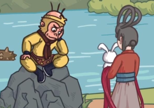 当你看到左边场景中的小猴子时,点击它们,让它们回到孙悟空的头上,成功移植孙悟空的头发。