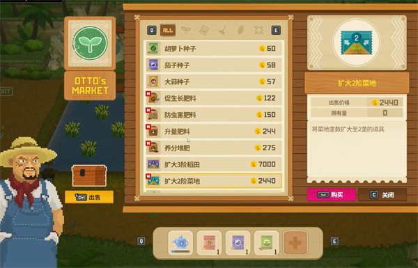 2.默认只显示一排菜地。玩家想要获得更多的菜地,就只能向奥托购买。