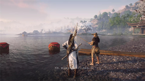 3.到达这里后,你可以找到一位老渔夫,与他互动,打开第五卷:秋渡海。