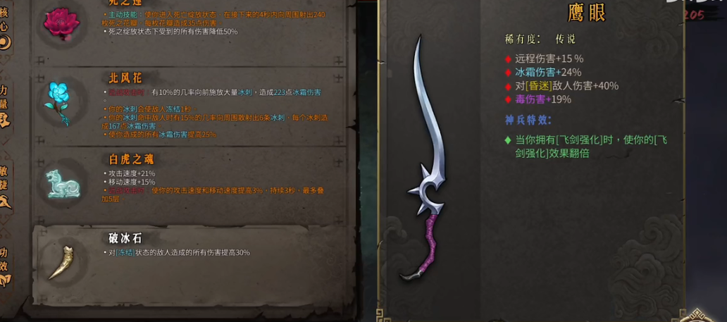 推荐圣物:千年寒冰+4破冰石或北风花。您可以根据个人喜好调整第四个位置。核心技能:湮灭之眼、死灵之寒、寒霜蔓延、严冬。武器推荐:太祖和狼王。