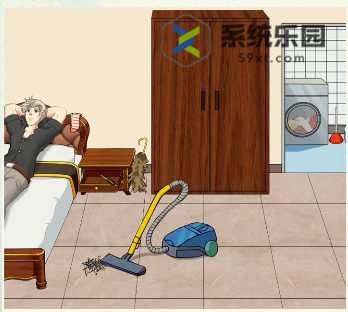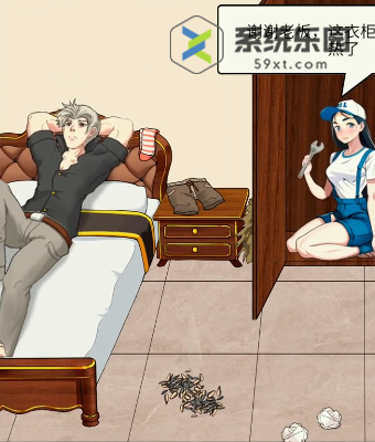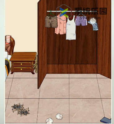 1.先打开衣柜把钱拖给修理工,然后把掉下来的衣服挂在衣柜上