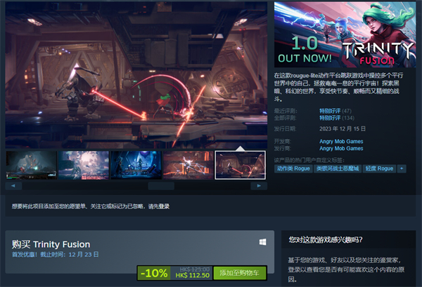 1、Trinity Fusion游戏,在Steam上搜索Trinity Fusion找到游戏详情页面,可以查看各种游戏内容和游戏信息。
