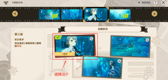 1.原神太阳方向第一相机位置:选择最右边的图片。