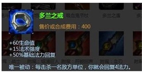 中路。物理攻击选择刀兰剑+红色药水。法师选择多兰戒指加2瓶红色药水。
