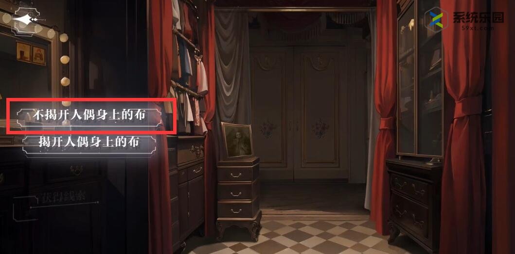 1. 保持房间1 和房间2 不变。调查3号房间的线索并选择揭开娃娃身上的布。