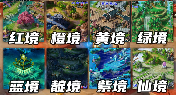 答案:第三层(黄色境界)、第五层(蓝色境界)或者顶层(仙境)