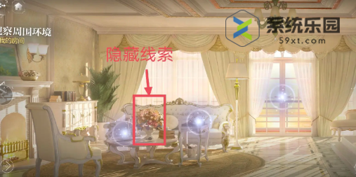 1.一开始观察房间,点击蓝色光圈,然后点击花束即可获得隐藏线索