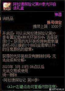 dnf阿拉德探险记第10季光环怎么获得?DNF阿拉德冒险第十赛季光环礼盒:开启后可以获得阿拉德冒险第十赛季最高等级成就奖励,接下来松山游戏小编将为大家带来第十张dnf战令赛季光环属性图。