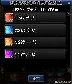 阿拉德冒险第十赛季光环礼盒:开启后可以获得阿拉德冒险第十赛季最高等级成就奖励——【燃魂服装套装礼盒(可选职业)】。