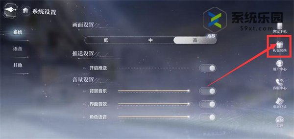 3.然后在设置页面右侧可以看到第二个礼包兑换按钮,点击进入
