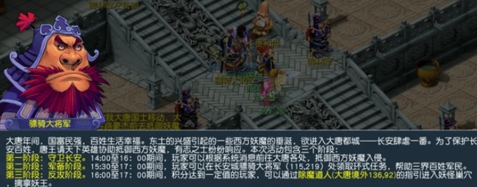 1、14:00-16:00守卫长安。玩家将按照系统提示从不同方向抢夺怪物。