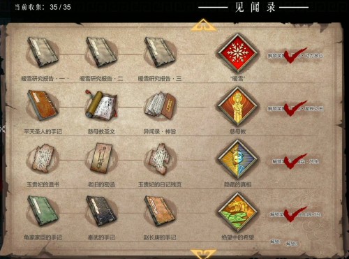 触发《暖雪金梦》真实结局的方法是击败虎章boss,选择离开,放走虎将秦五,并收集所有玩家的信息记录。隐藏结局的触发方式是在龙之章中击败龙之章的boss龙皇。选择血盟印章并收集所有记录,总共35项。