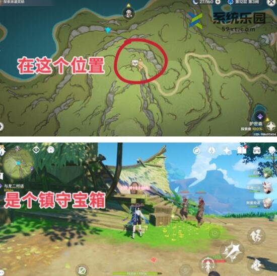 1.玩家可以到下图标记的位置看到看守的宝箱: