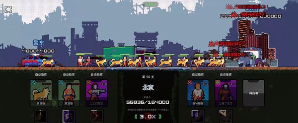 第一次通关后,购买金卡红日中尉(增加50%攻击力buf,增加100%暴击伤害buf)和一辆便宜又足够的战术车(连击buf,暴击伤害加成buf),前期比较贵。暴击无法触发,会卡住。后期暴击率超过40,伤害倍数更是爆炸。
