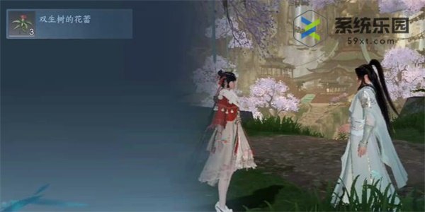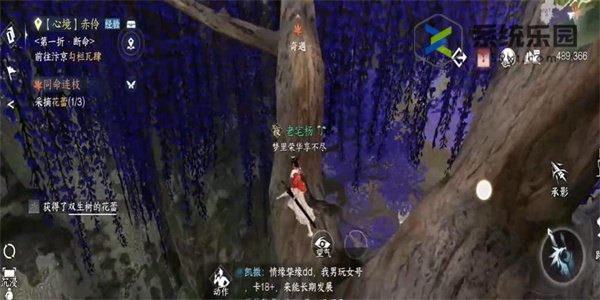 3.这时候,树下会有一个NPC叫我们,让我们摘双生花给他。