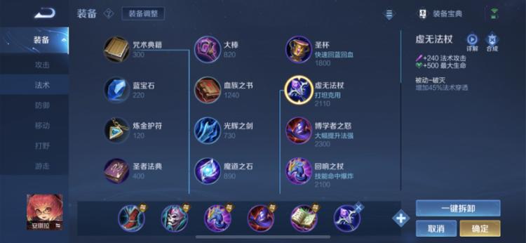 套装一:奥术之靴+回音之杖+博学者之怒+虚空之杖+噬神之书+贤者之书/贤者庇护所/明月/火主宰。安吉拉的这套服装爆率很高,续航也足够。她要配合队友抓人,团战要注意大输出位置。后期辉月可以兑换复活甲。