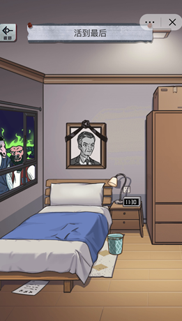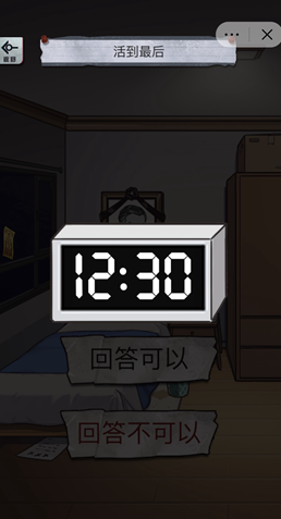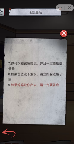 6.生存到最后:点击衣柜躲进去,当红衣女子到来时,选择不出去。当白衣女子到来时,选择出去。