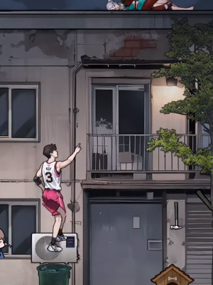 5. 滑下外墙并将砖块放在上面
