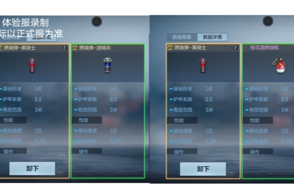 比较燃烧弹-黑骑士与燃烧弹-游侠,以及桂花酒燃烧弹。