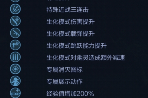 AK47-雷霆和雷霆家族的其他主力武器一样,拥有增加生化模式伤害、增加弹药装载量、提高跳跃能力、对鬼魂额外减速等一系列技能。