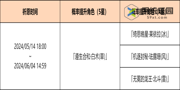 1、活动期间,限定5星角色“尊胜合合白树(草)”获得愿望的概率大幅提升。