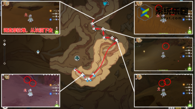 在上图的最后,你可以看到一个莫拉堆,与之互动就会出现一个沙坑。