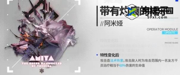 特性变化:攻击造成魔法伤害。攻击敌人时,攻击范围内的友方干员会获得相当于伤害60% 的生命值治疗。