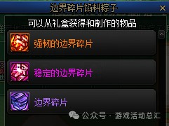 1、【日常结界碎片粽子】的喂养材料是永久的,有几率生成【强力结界碎片】,是未来【神60】装备入门级的必备道具。
