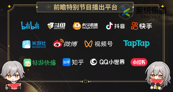 观看地址:米有社、bilibili、微博、斗鱼、虎牙、抖音、小红书、快手、微信视频号、TapTap等。