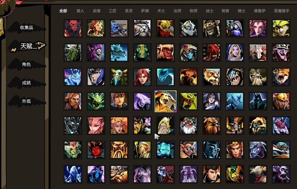 2。然后在左列中选择“天赋”,以查看完整的英雄名单,然后选择要升级才能的英雄。