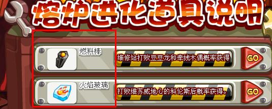 燃料棒通常用于炉演化中。可以用火炉进化的宠物包括火山炉,声音狗,耀眼的鸡肉,燃烧的猿和凶猛的火龙。在维修站现场,您可能会击败Doudou Dragon和Marionette。燃油杆。