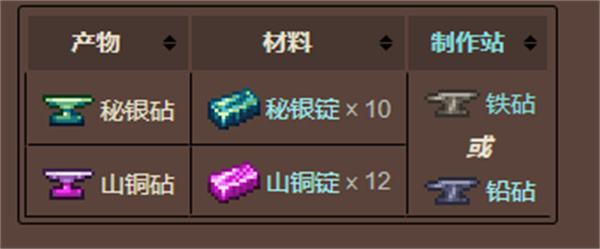 在游戏中,砧座可以升级到二尖瓣砧或山铜砧,但有必要先制作砧,然后合成。我们可以首先收集铁矿石,然后将其放入炉子中,然后将其放入铁矿,然后在工作台上可以完成,或者玩家仍然可以从商人NPC购买。