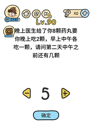 如何通过思维思维的第90级? 90级的标题是“晚上,医生给了您8颗药丸,要求您在晚上服用2粒药,晚上在凌晨一丸,一顿药丸,中午一丸,下午中午之前将留多少药天。”这个水平的许多玩家非常适合头痛,编辑将为您带来第90级大脑的指南。