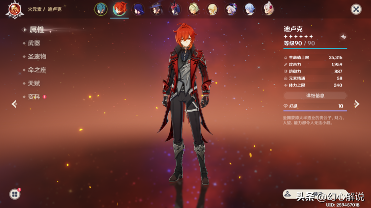 基本上是这样,所以迪卢克其实只有四个有用的条目,【暴击率】【暴击伤害】【元素掌握】【攻击力】反正就按照这四个叠加就可以了,谁少了就给谁加一点点,堆积起来直到毕业。