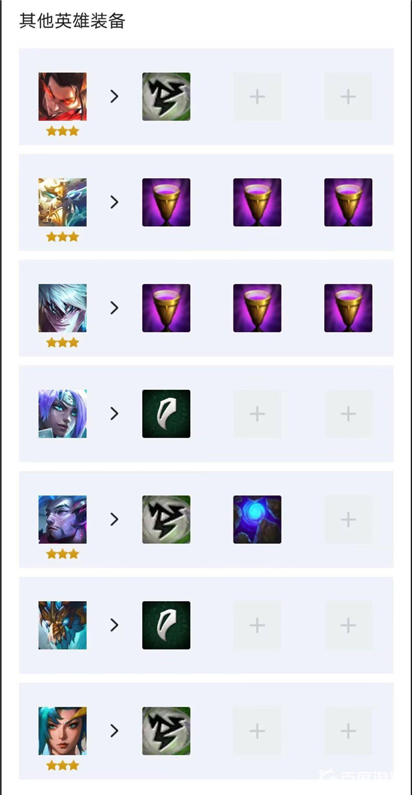 4.其他英雄装备:塞特的装备是风暴龙徽记、沃利贝尔的装备是3个圣杯、李青的装备是3个圣杯、奇亚娜的装备是龙王徽记、亚索的装备是风暴龙徽记和蓝霸符咒,敖星的装备是龙主徽记,卡莎的装备是风暴龙徽。