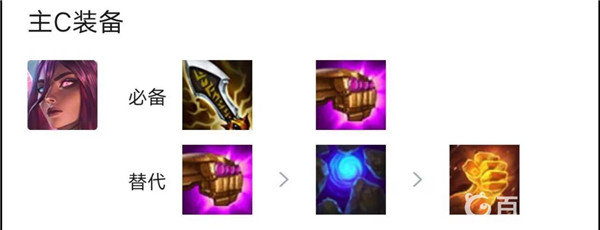 3、主C必备装备为无限、珍珠手套,替代装备为珍珠手套、蓝色护符、正义之手。