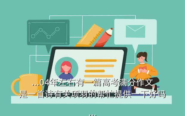 1、...04年左右有一篇高考满分作文是一首诗有关项羽的帮忙提供一下好吗...我想你要找的是(读完20后请打赏。) 2002年全国高考作文满分:霸王的眼泪霸王的眼泪河南考生“生是英雄,死是鬼。” 仍怀念项羽不肯渡江东。 “夜幕降临了,他和他的马独自站在冰冷的乌江畔,秋风吹起他凌乱的长发,坚毅的脸上写满了疲惫。他回忆起年轻时叔叔说过的话: “因为为了浅浅牺牲一个人,和为了浅浅牺牲一个人,都是错误的。然而,你必须做出选择。