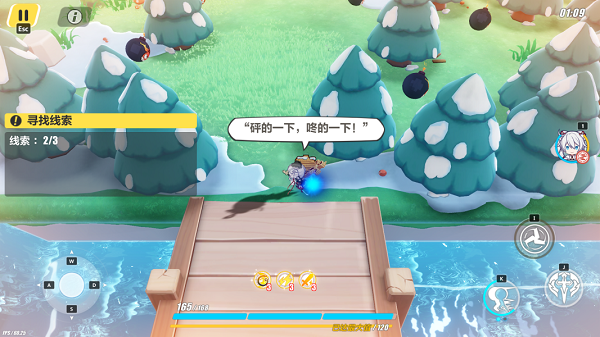 完成方法:接近树妖首领并攻击。激活敌人后,使用角色“特蕾莎”,使用“普通攻击”和“移动”将炸弹推向树妖boss。
