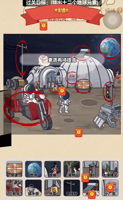 《流浪月》是手游《老六爱找麻烦》中的第187关。关卡场景是月球基地,玩家需要找到12个土元素。那么老六爱找麻烦的第187关怎么过呢?下面就为玩家们寻找老刘爱在流浪月球上找麻烦的12种土元素!