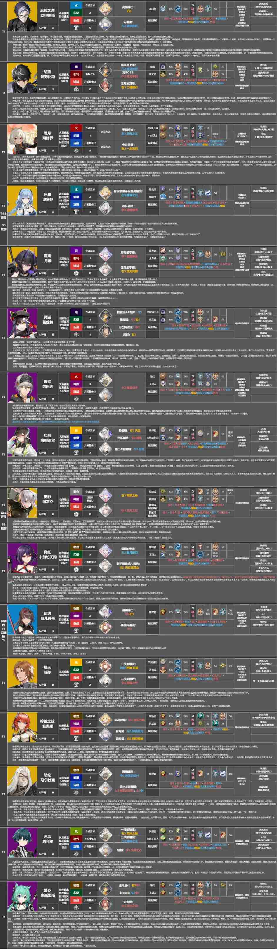 深空之眼角色强度排行推荐列表