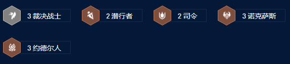 2. 结成羁绊:3审判、2盗贼、2指挥官、3诺克萨斯、3约德尔