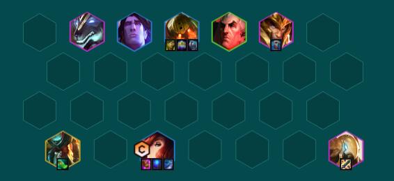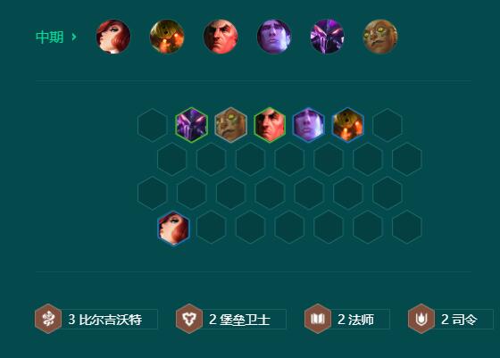 阵容羁绊1 海天灾, 4 指挥官, 3 锈水, 2 恕瑞玛, 2 主宰, 2 法师