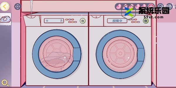 4、然后我们根据提示点击洗衣机,把衣服放进去,然后放入洗衣液。