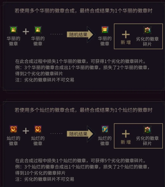 4、想要获得高级徽章,必须使用4枚徽章合成,获得降级徽章碎片。